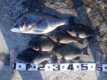 釣り仲間が朝から釣りに行っていたので、スーパーの買い物後に合流しました。仲間が帰った15時30分から16時10分まで、小爆釣しました。28cmアップの5枚を持ち帰りました。
