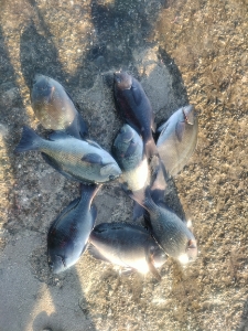 今日は向かい風(西風)が強く、釣り辛い1日でした。グレは小型が多く、タモ入れサイズは出ませんでした。オセンは相変わらず元気です。