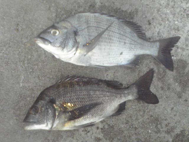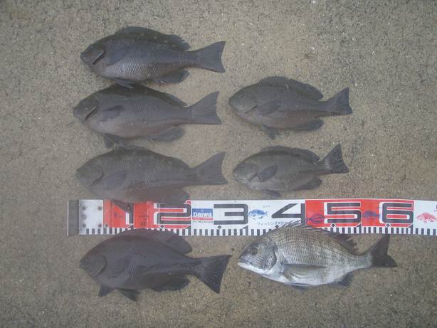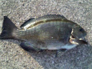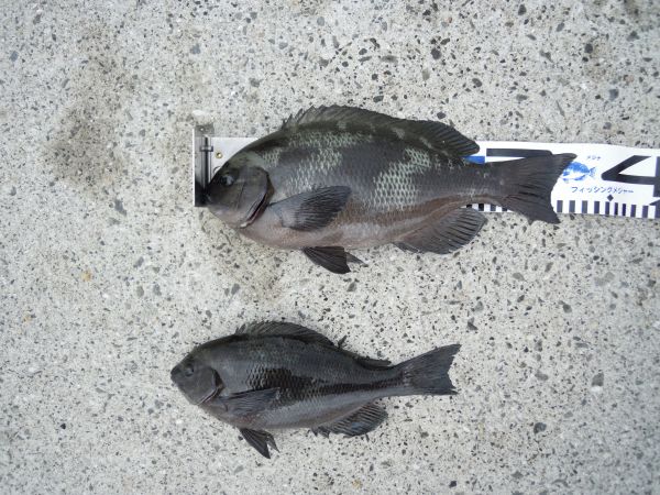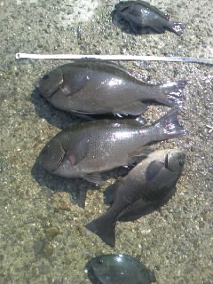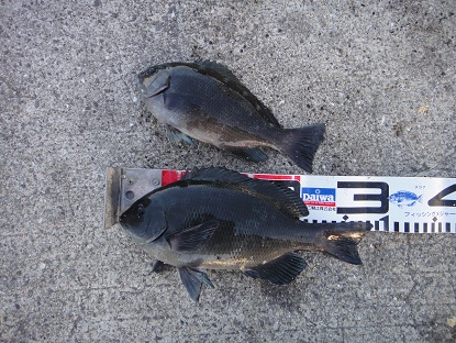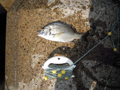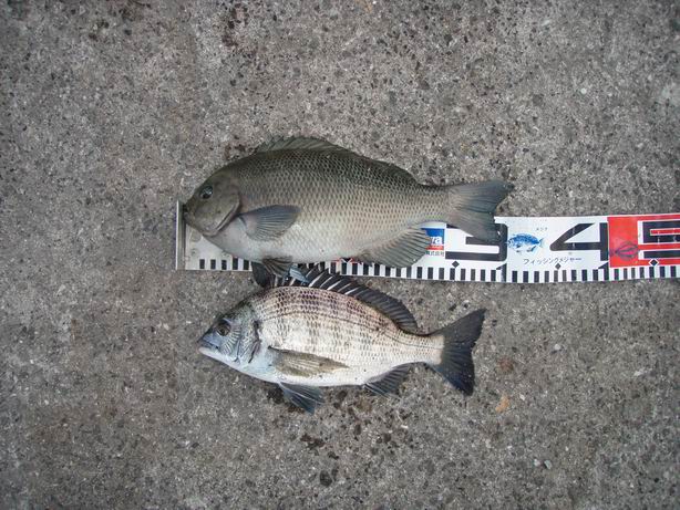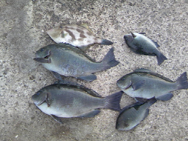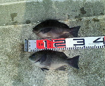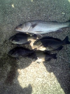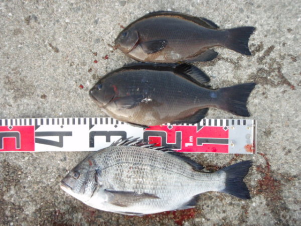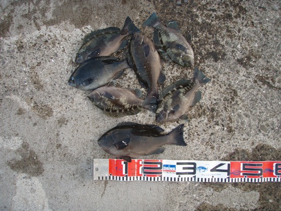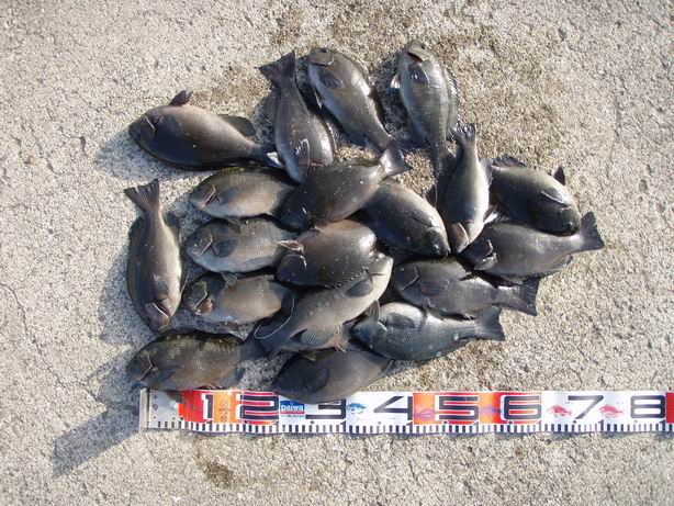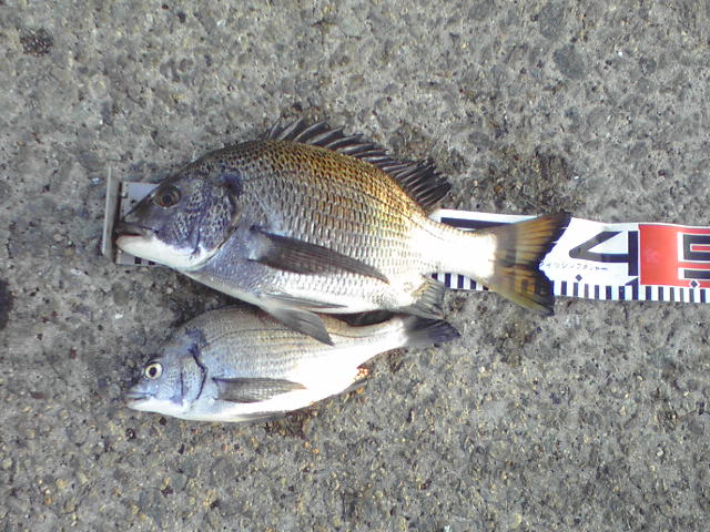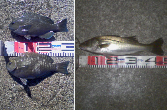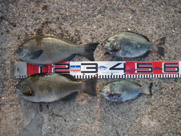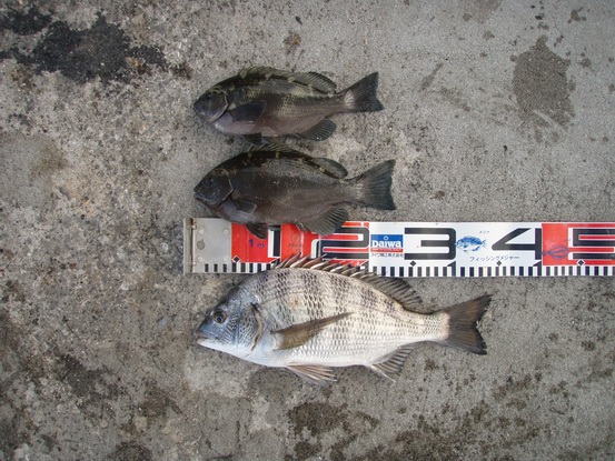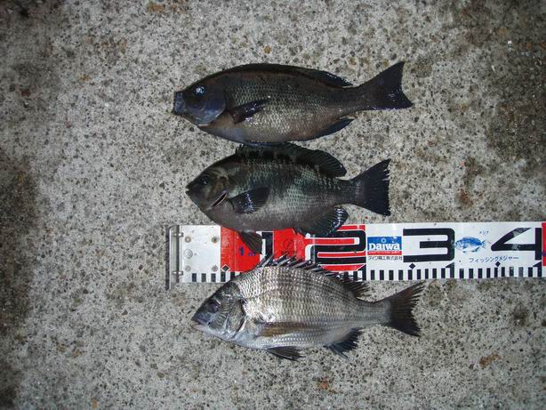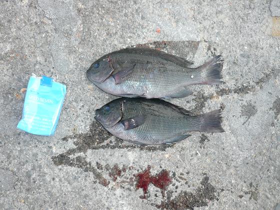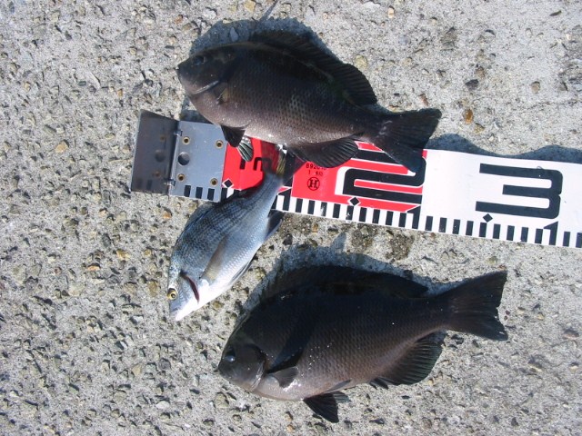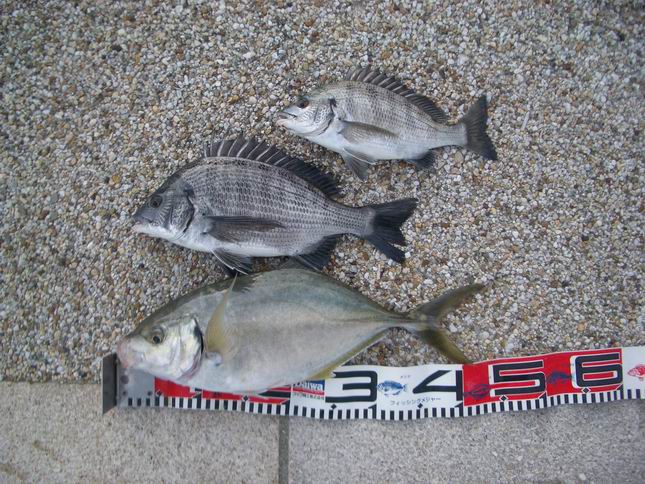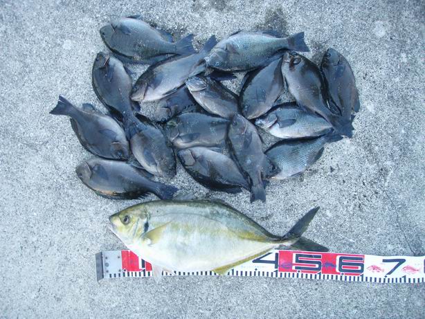 シマアジは奇跡的に釣れました。エサはコーンです。チヌはオキアミ、コーンです。