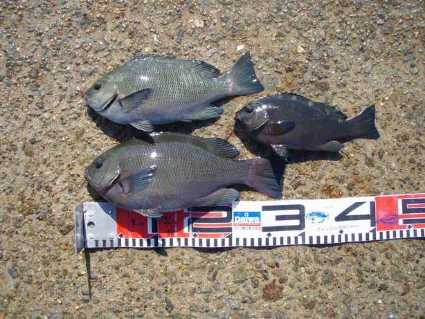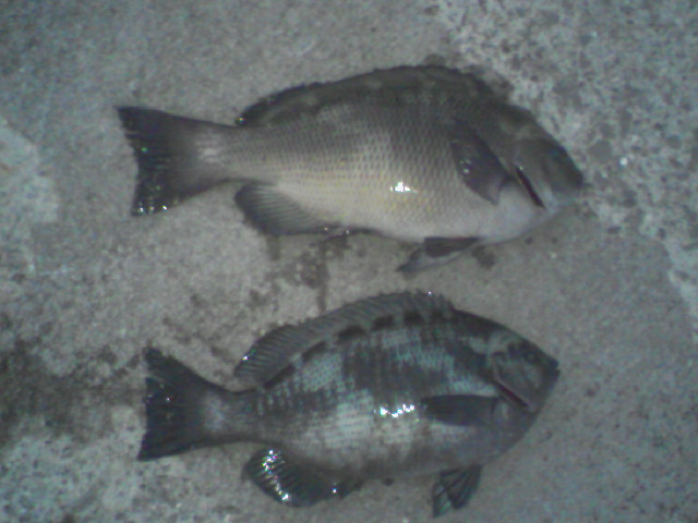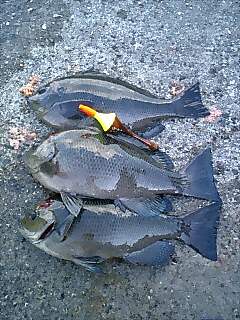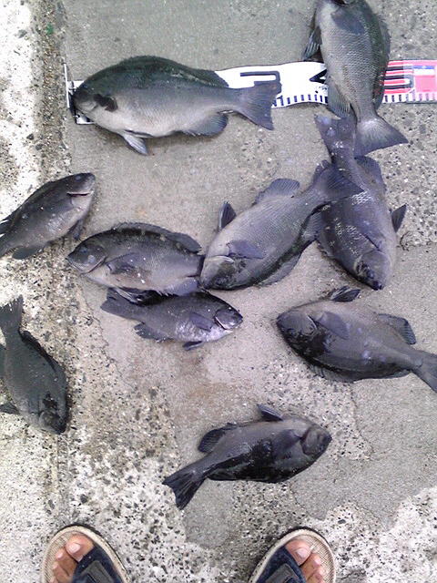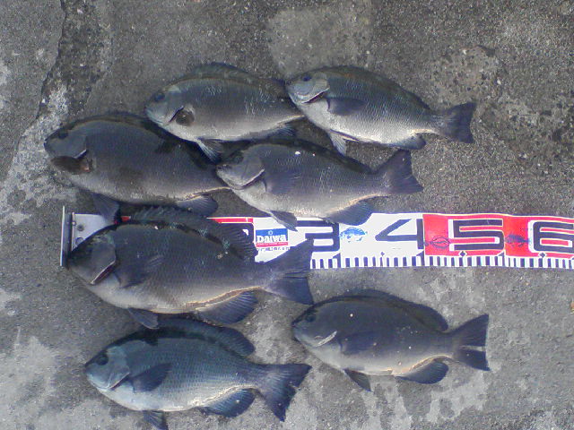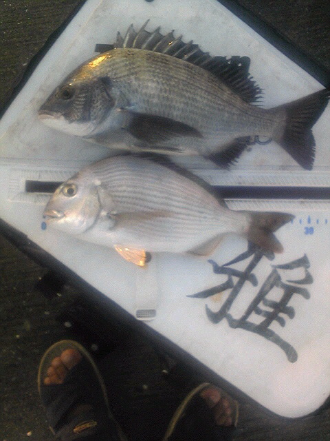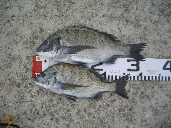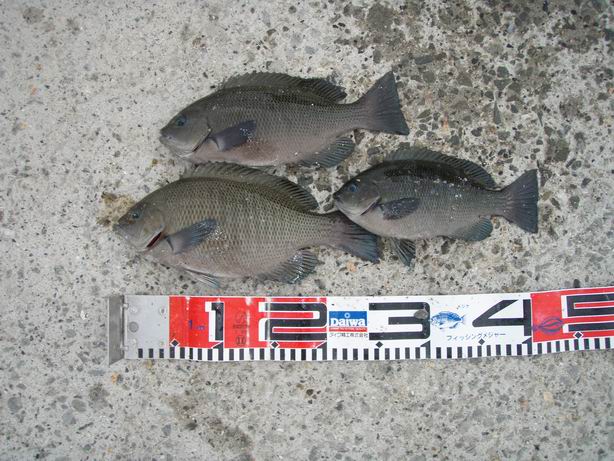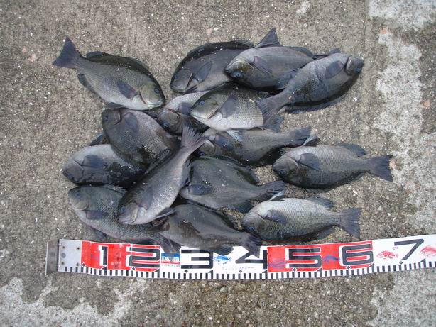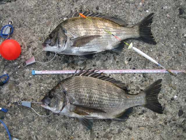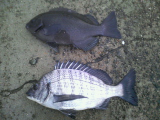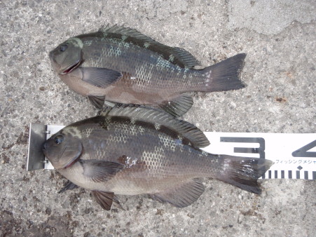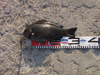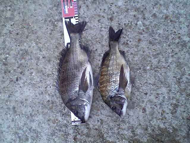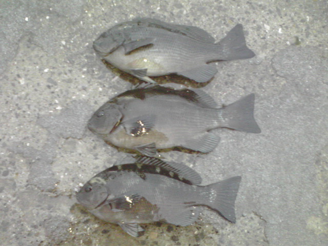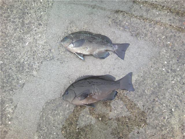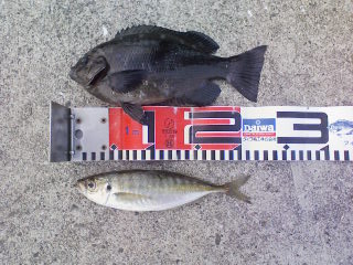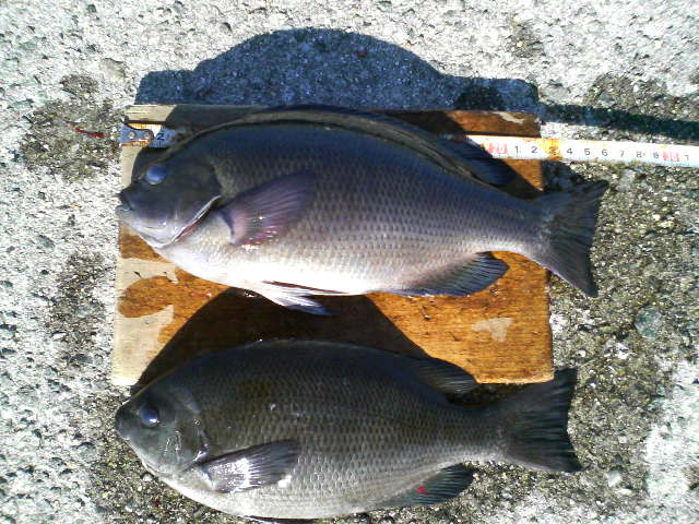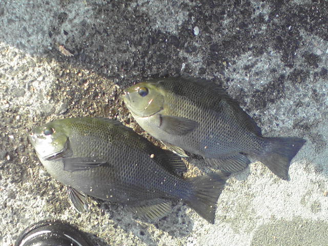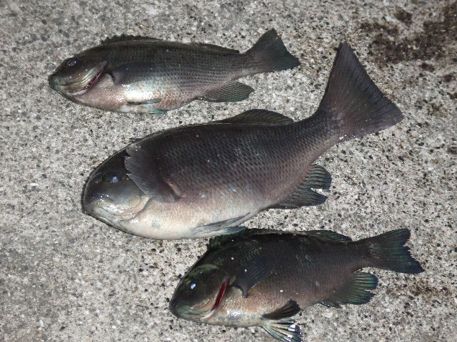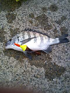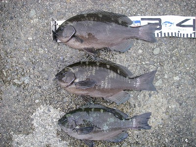 シマアジは奇跡的に釣れました。エサはコーンです。チヌはオキアミ、コーンです。