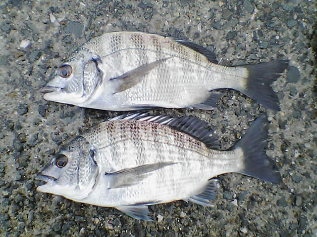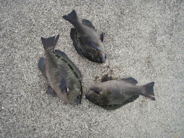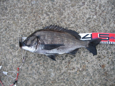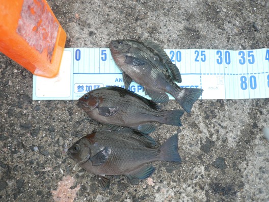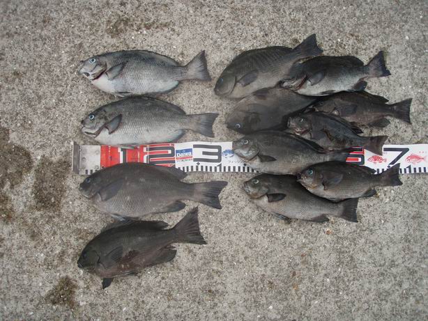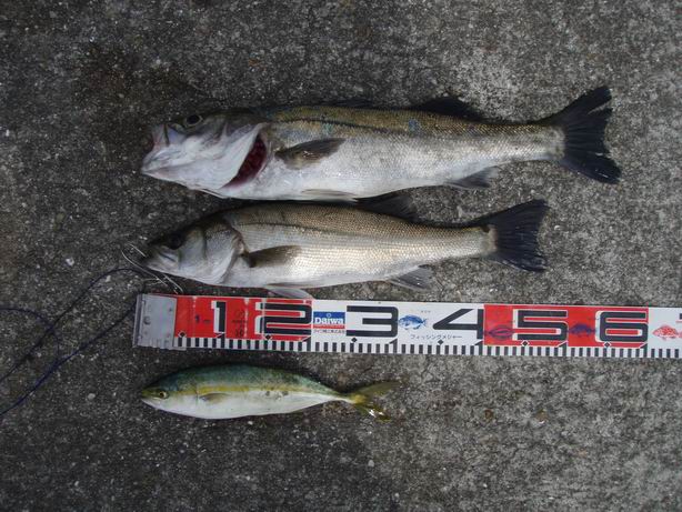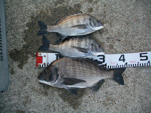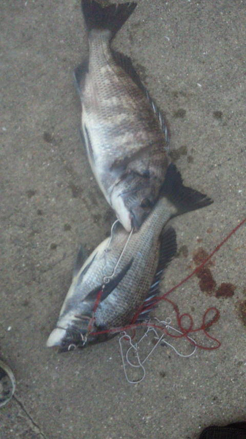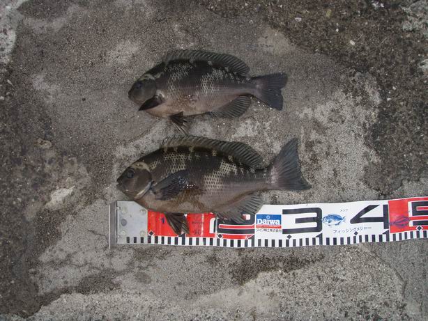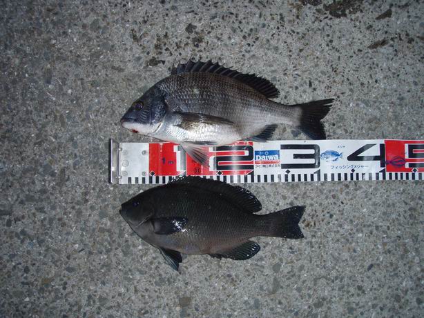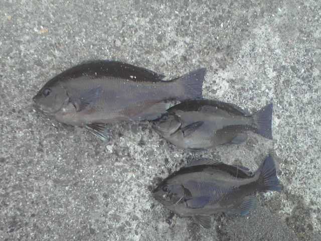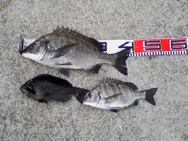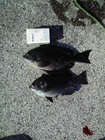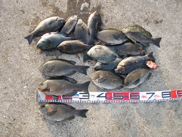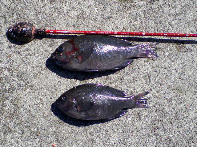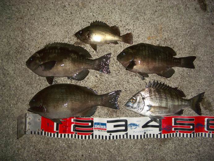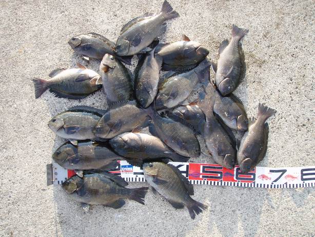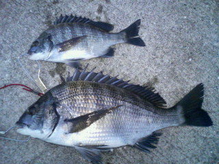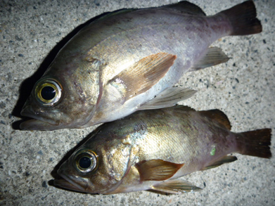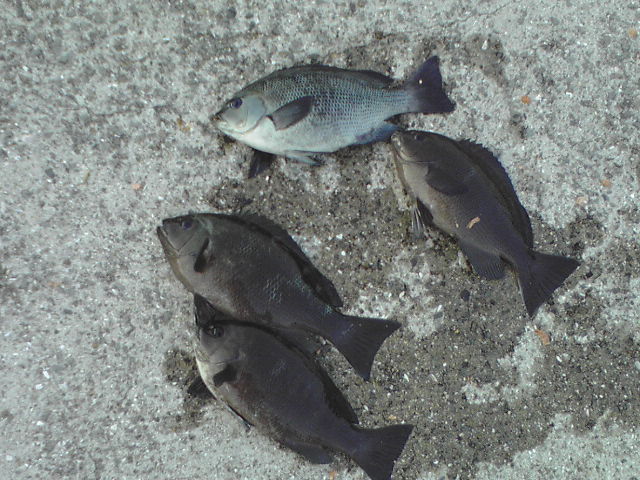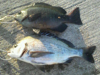 シマアジは奇跡的に釣れました。エサはコーンです。チヌはオキアミ、コーンです。
