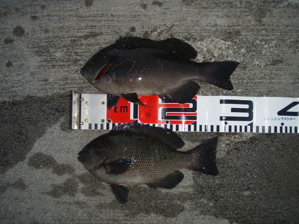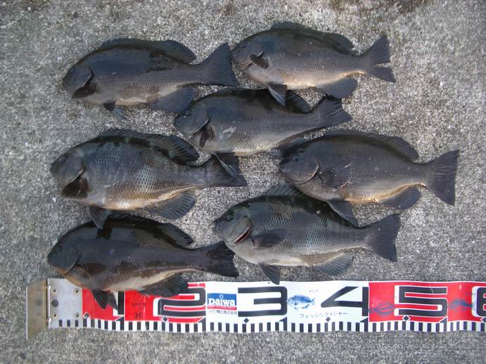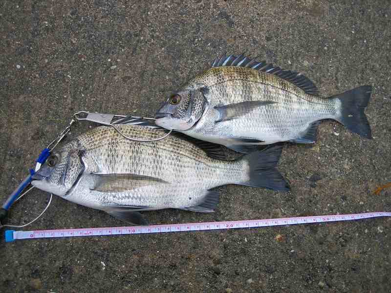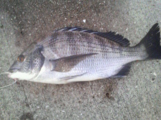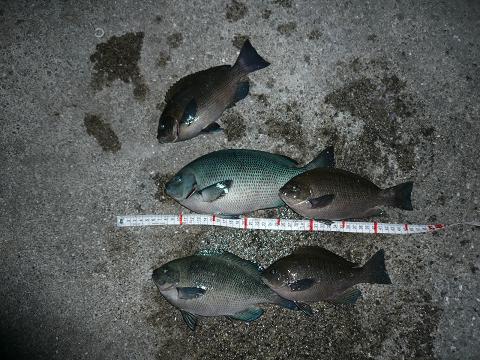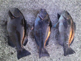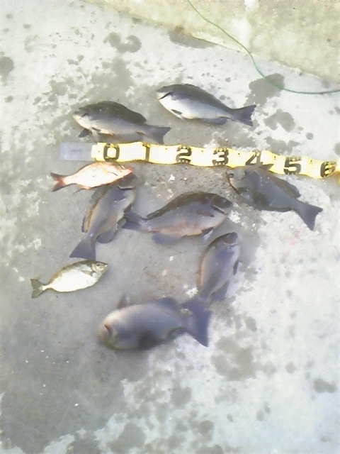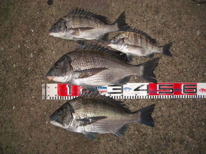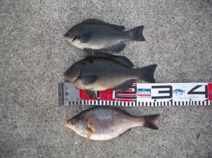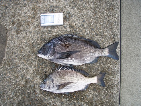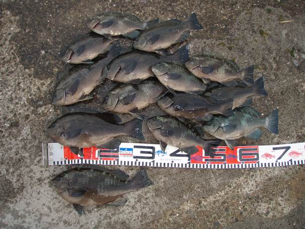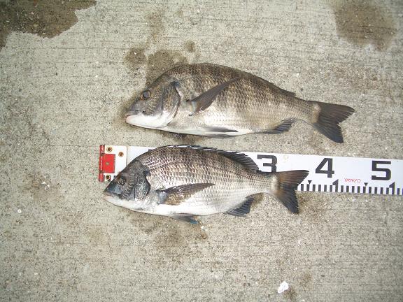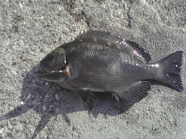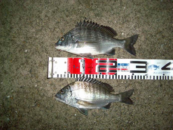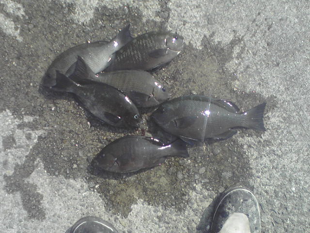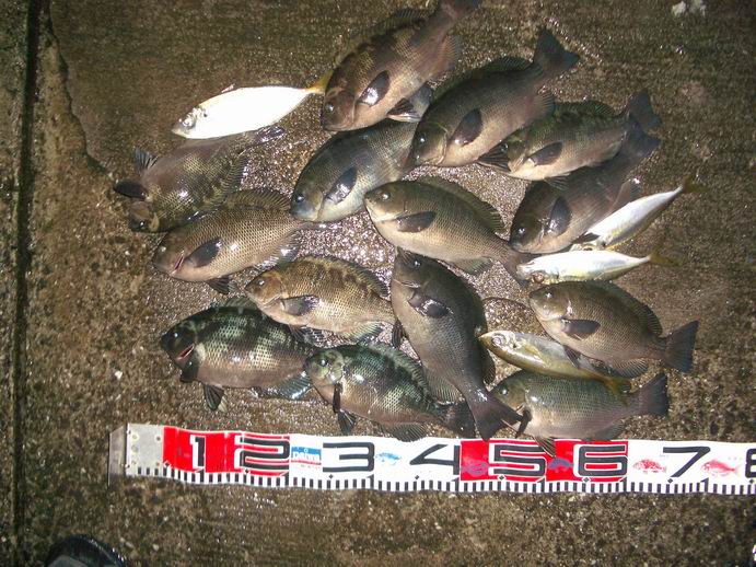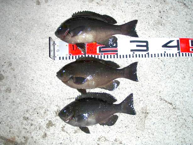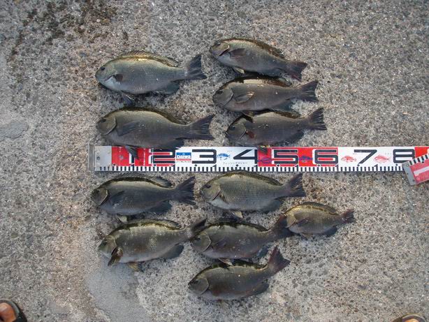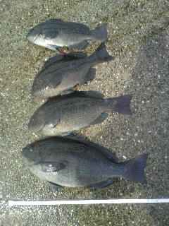 シマアジは奇跡的に釣れました。エサはコーンです。チヌはオキアミ、コーンです。