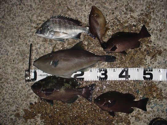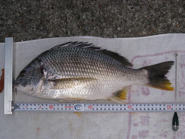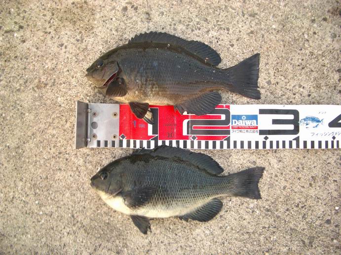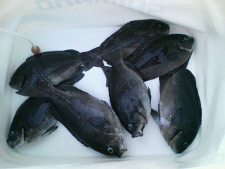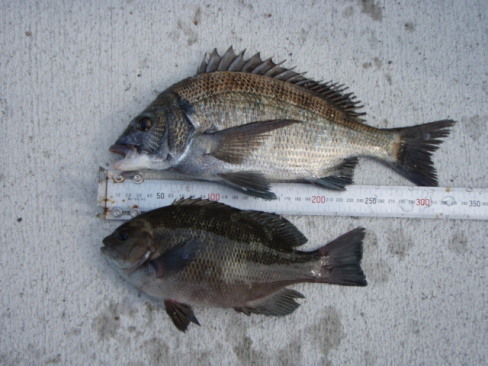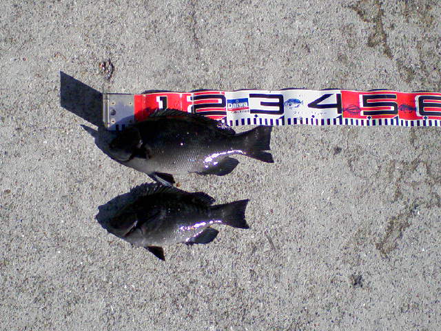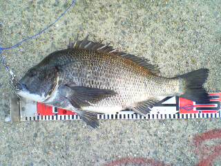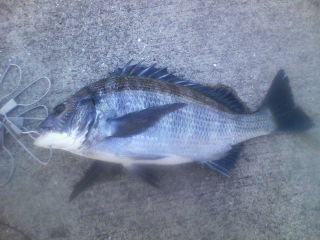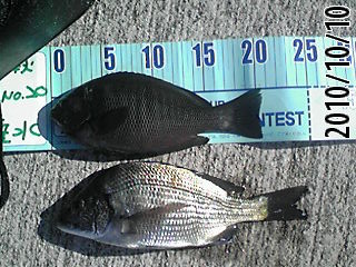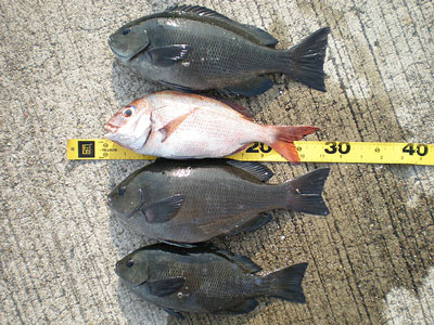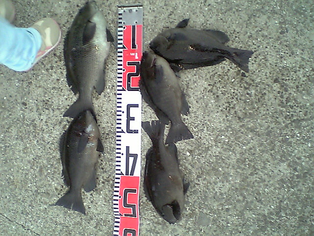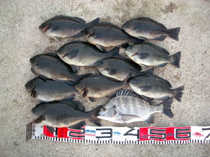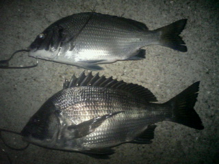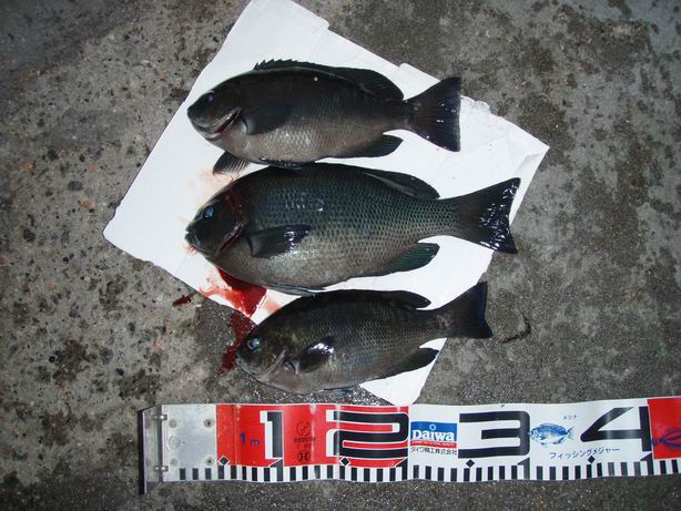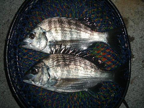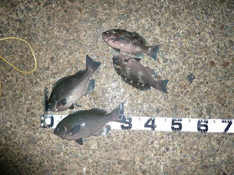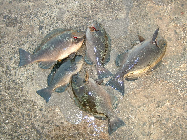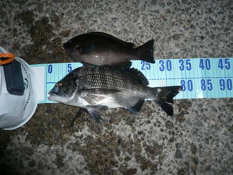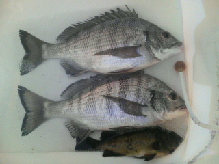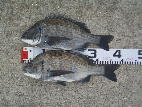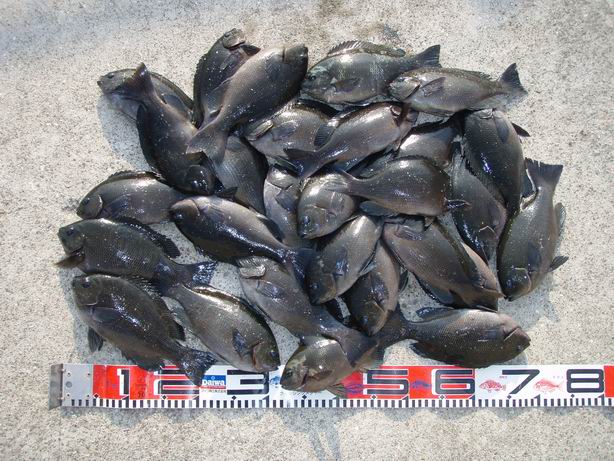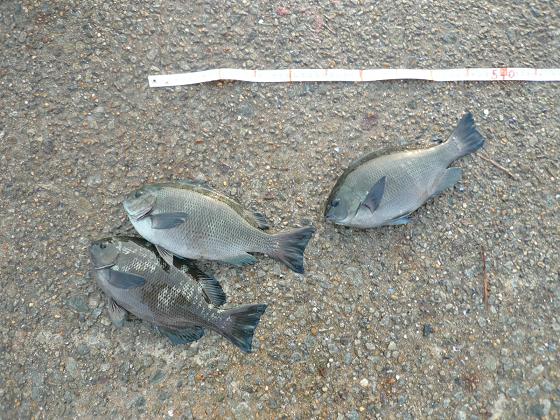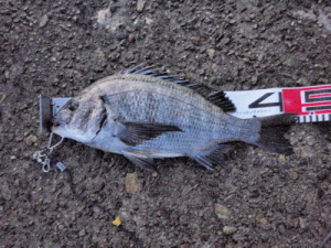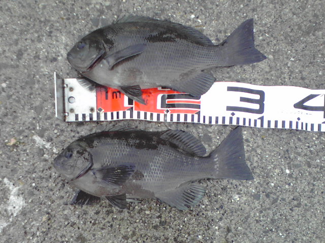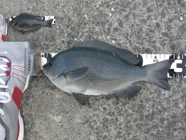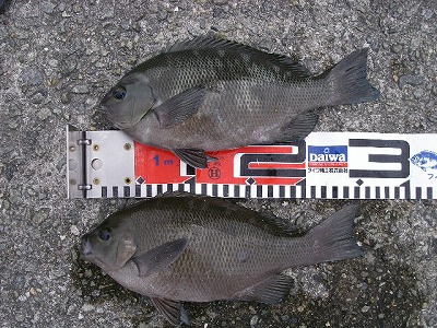 シマアジは奇跡的に釣れました。エサはコーンです。チヌはオキアミ、コーンです。