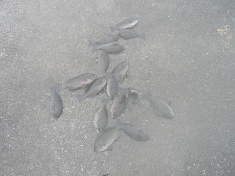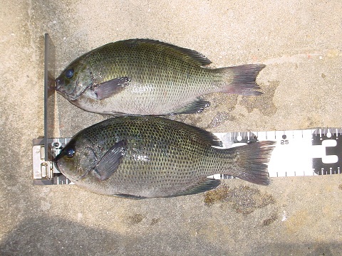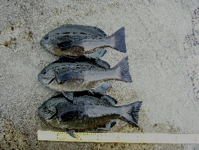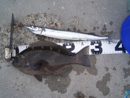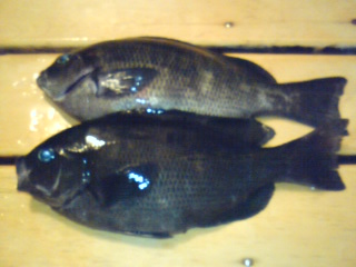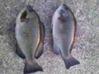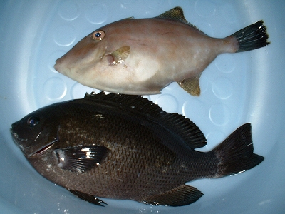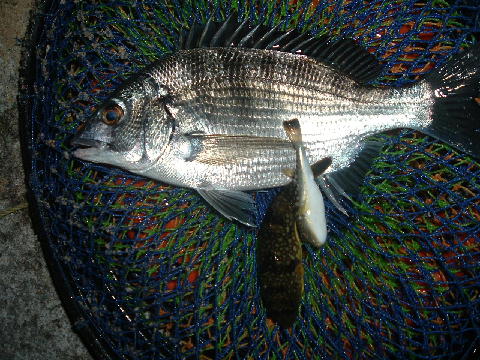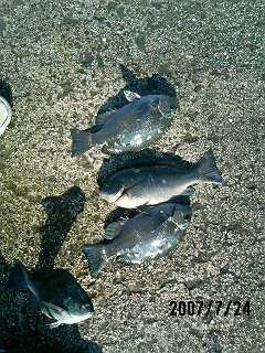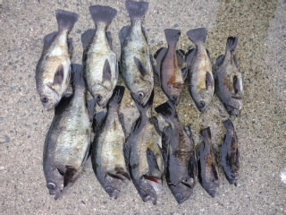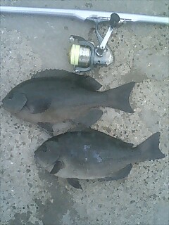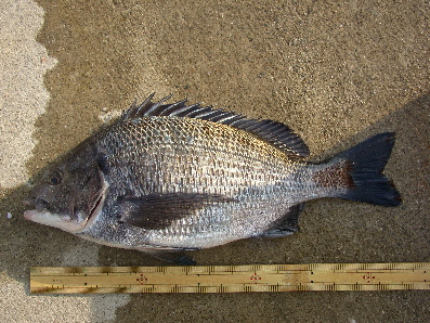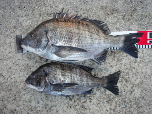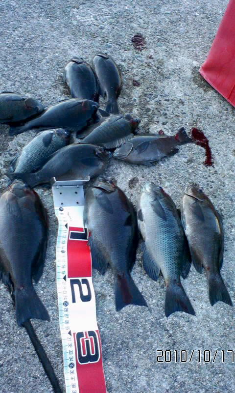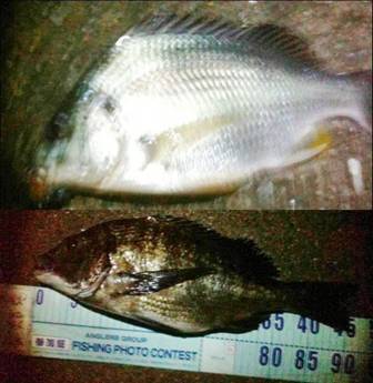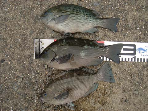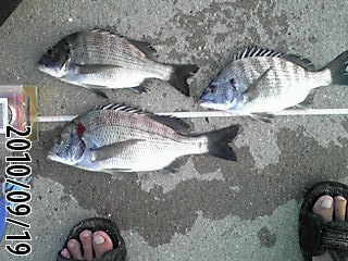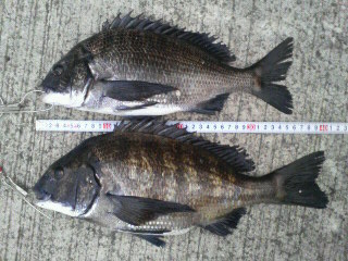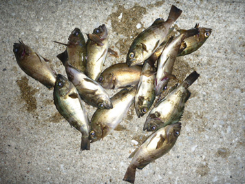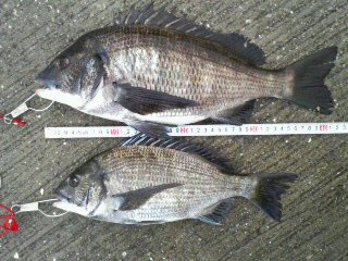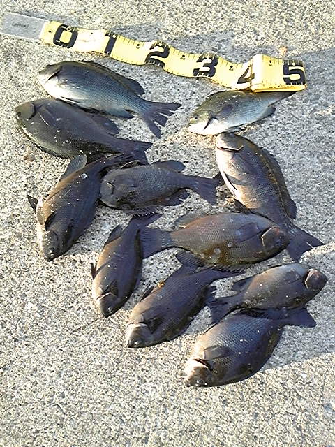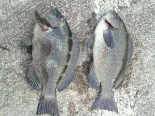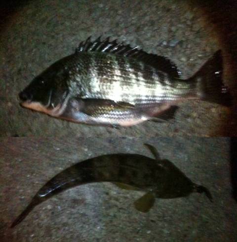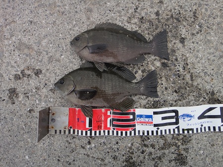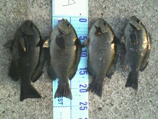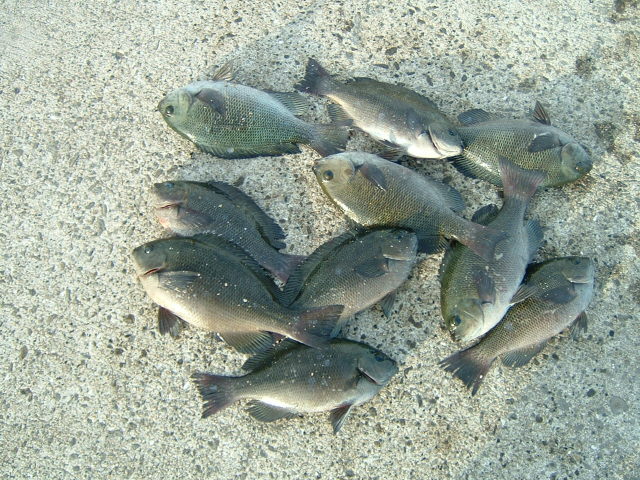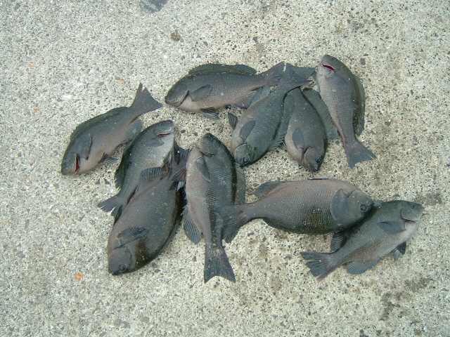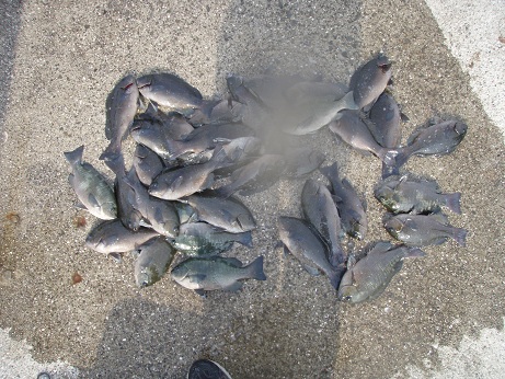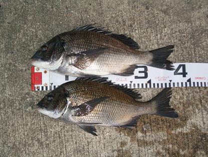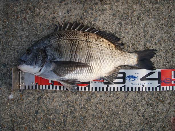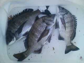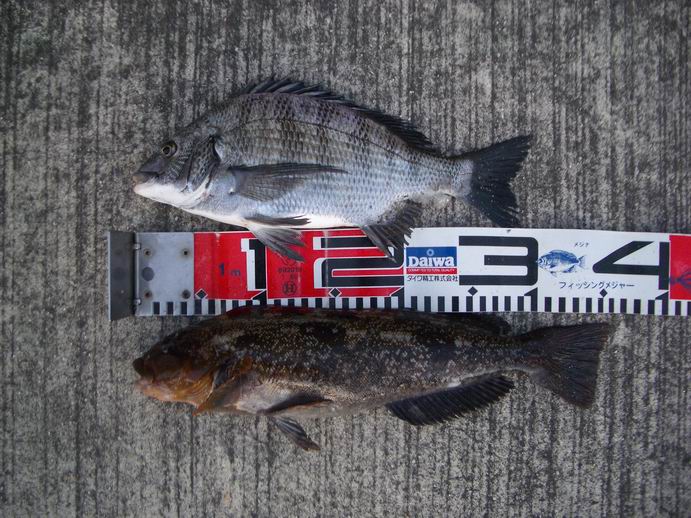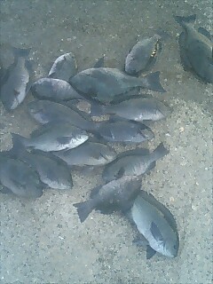 シマアジは奇跡的に釣れました。エサはコーンです。チヌはオキアミ、コーンです。