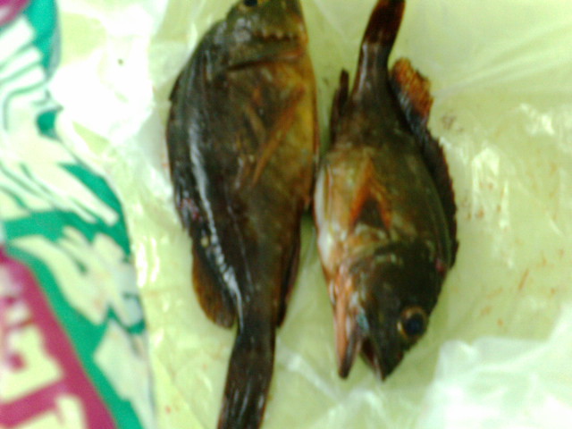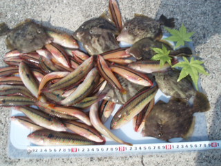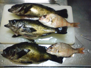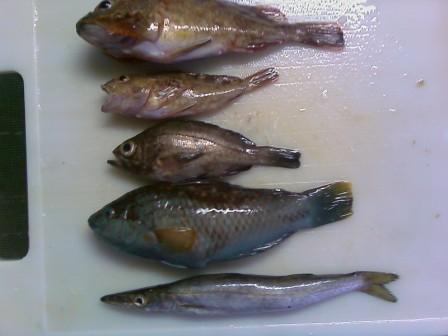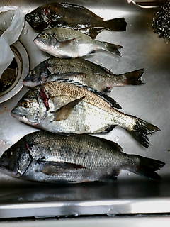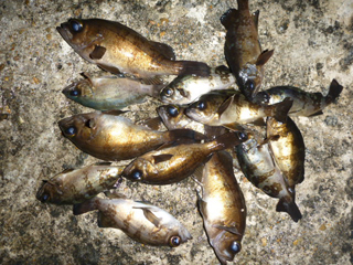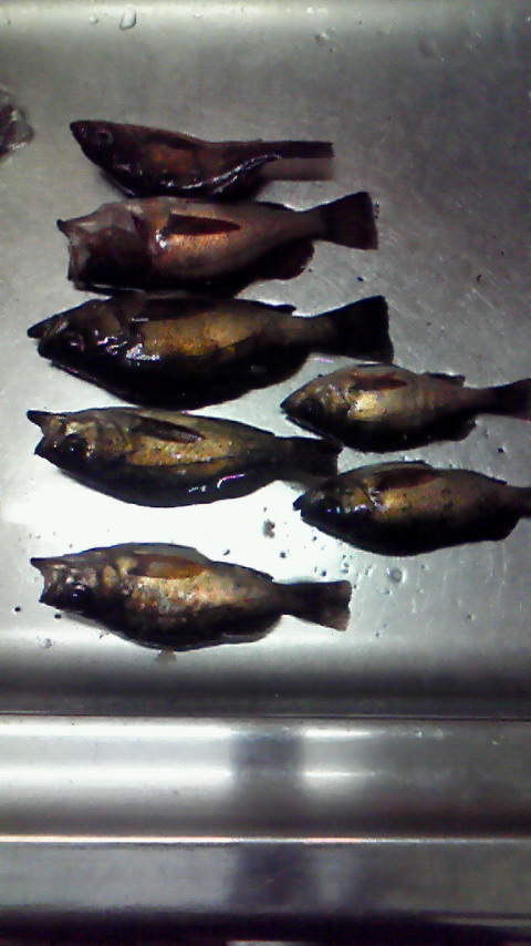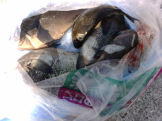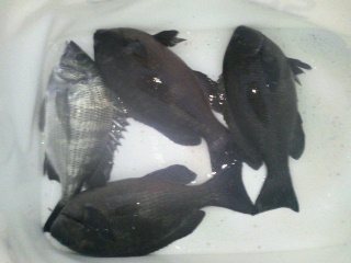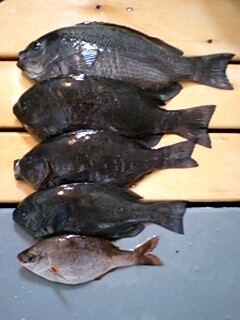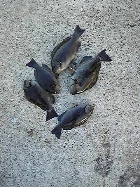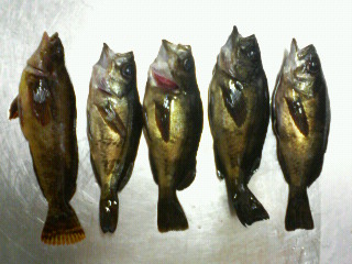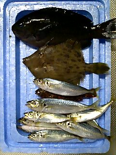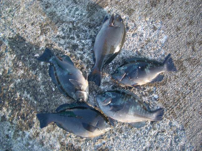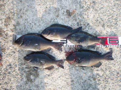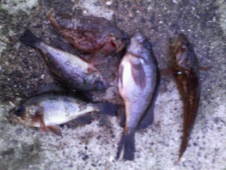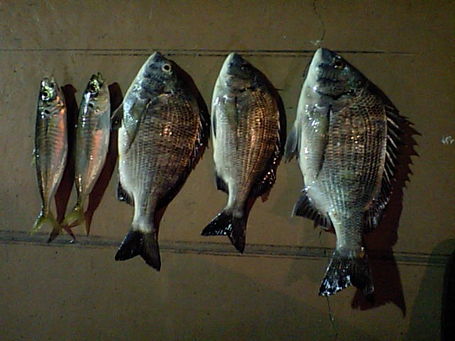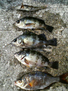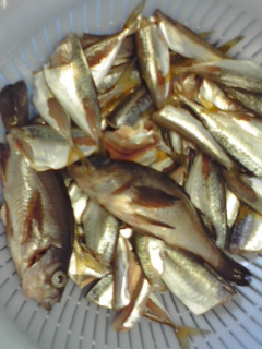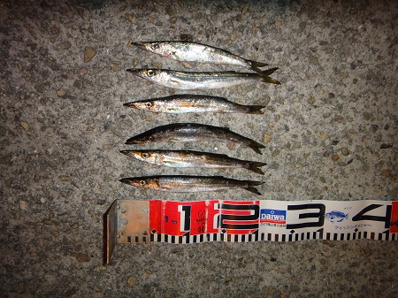 今日は風がとても強く、いい釣果がだせませんでした。から揚げサイズ5匹のみです。