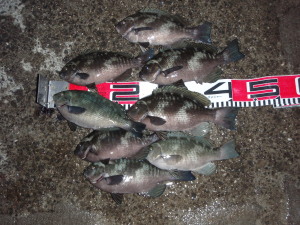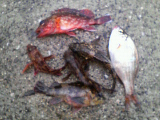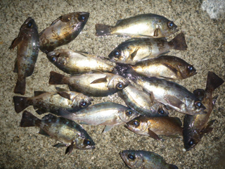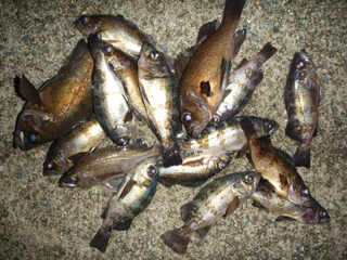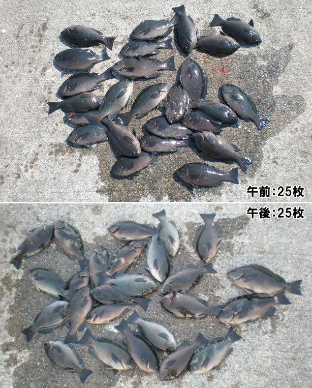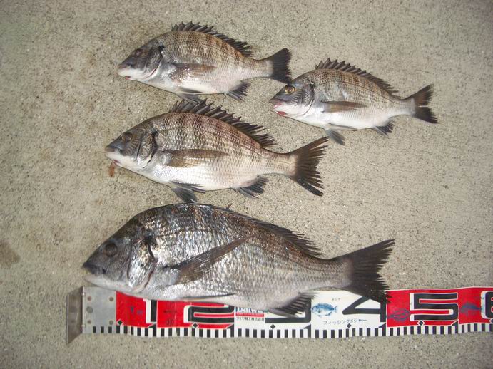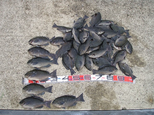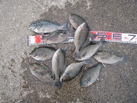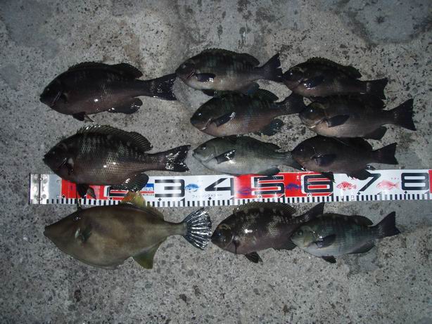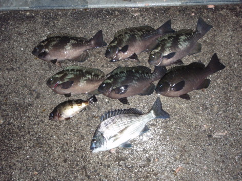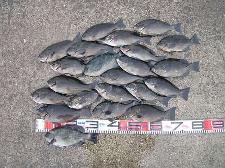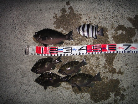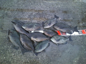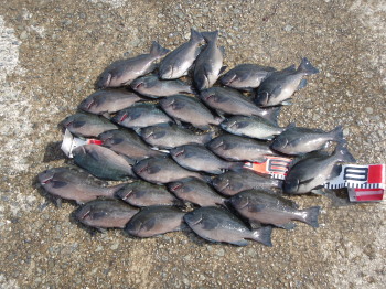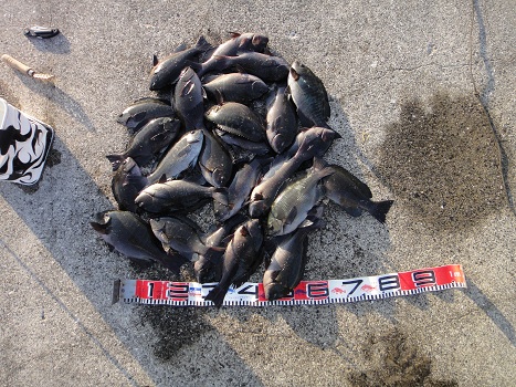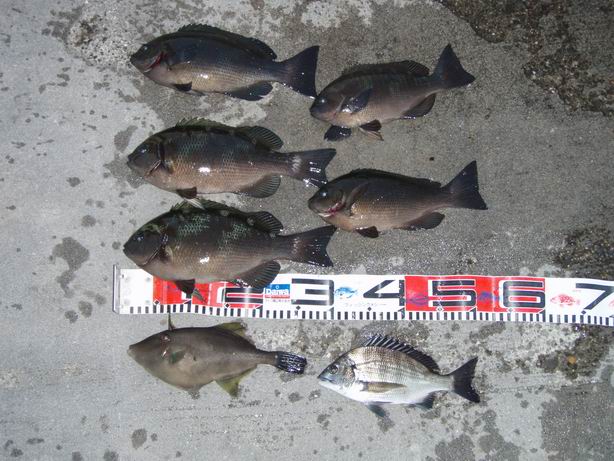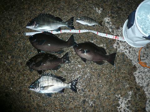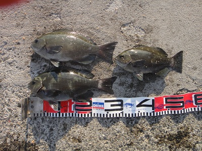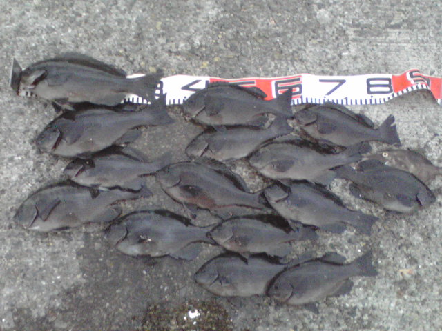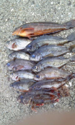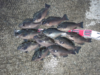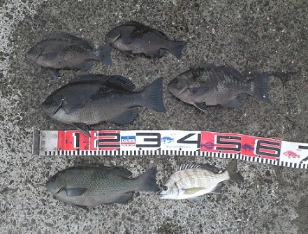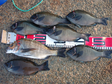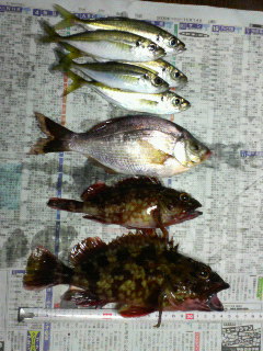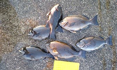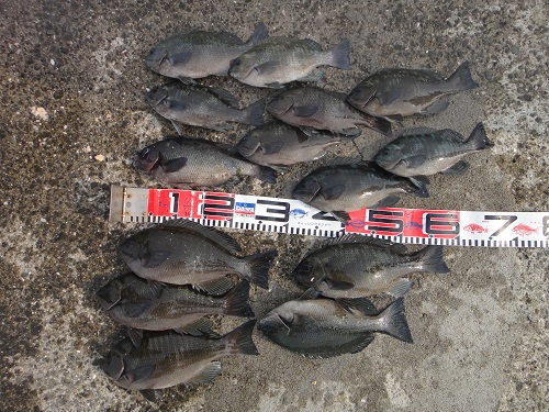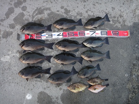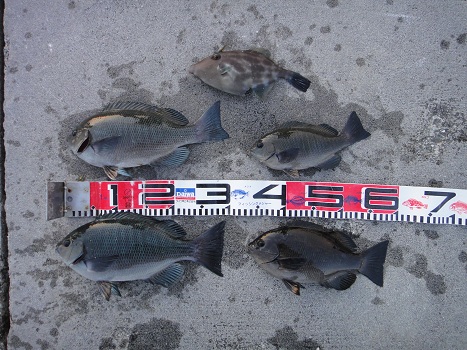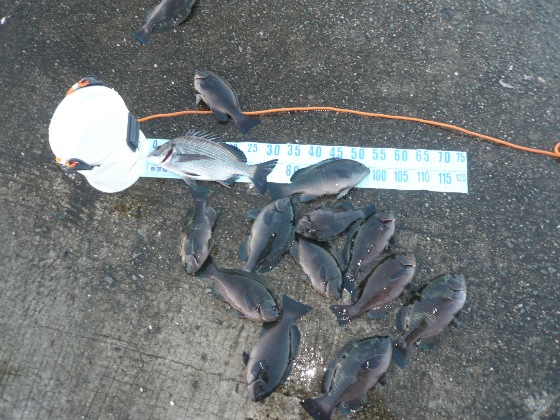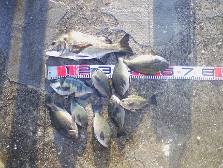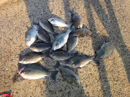 15時頃から小アジ多数。グレは14時から16時までの釣果。