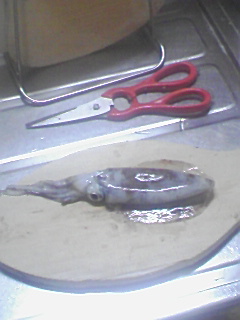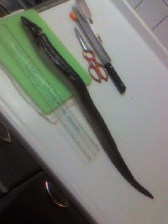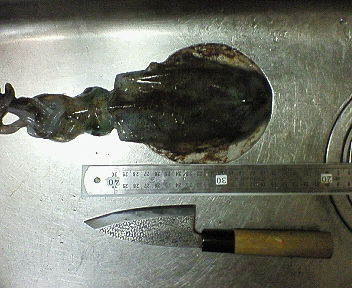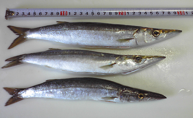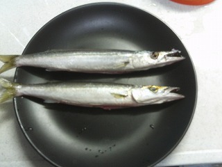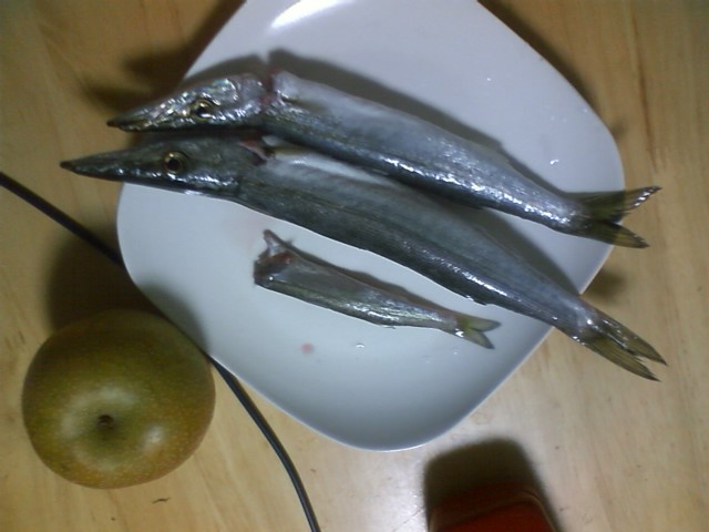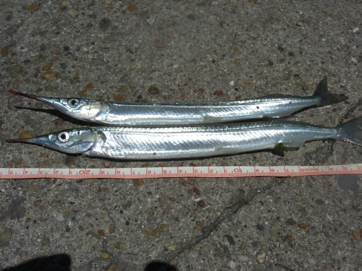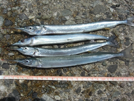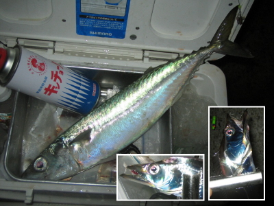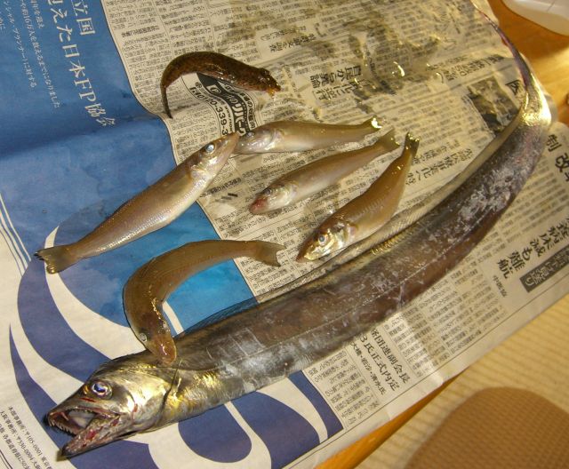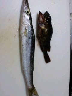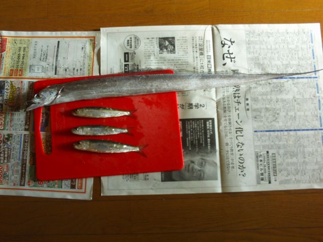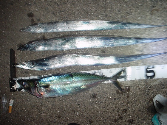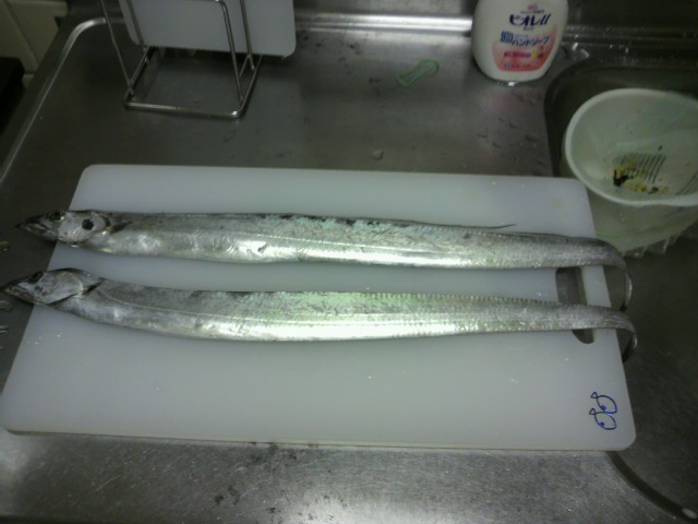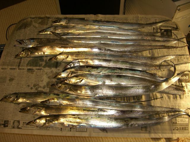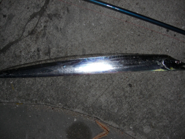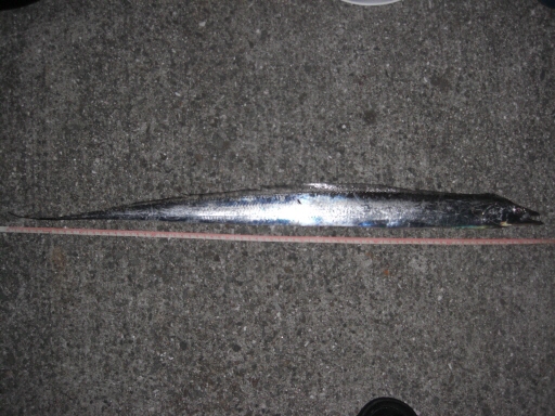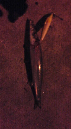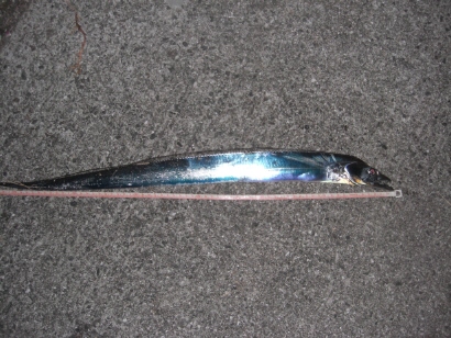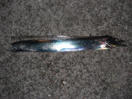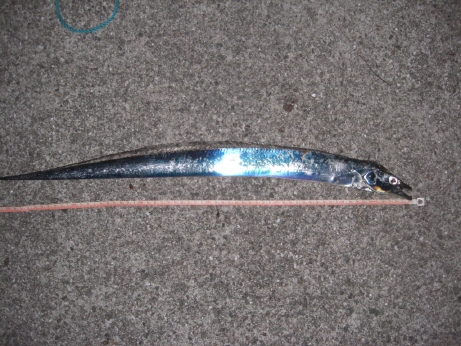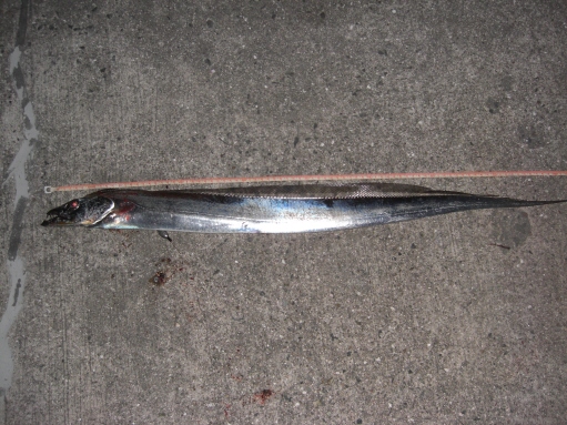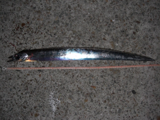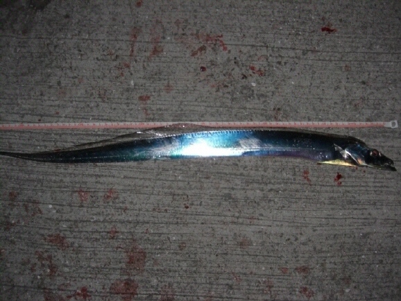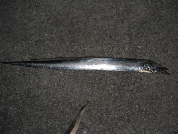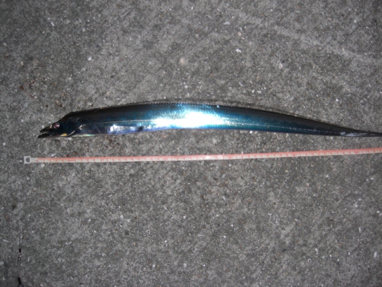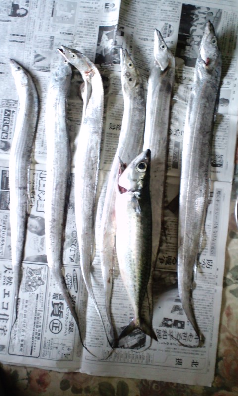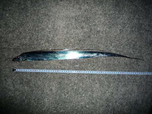 今季初の太刀魚は共食いされた痛々しい太刀魚君でした。