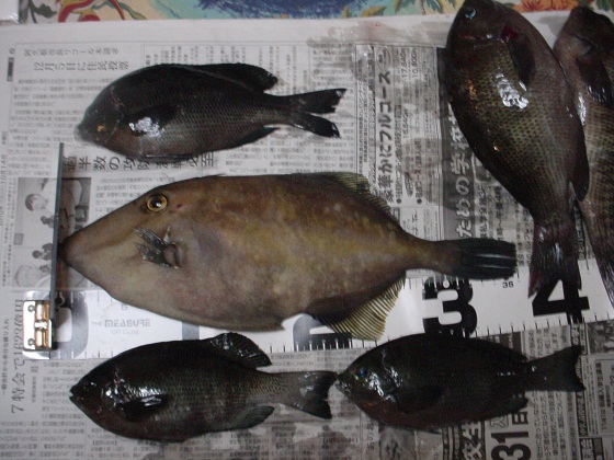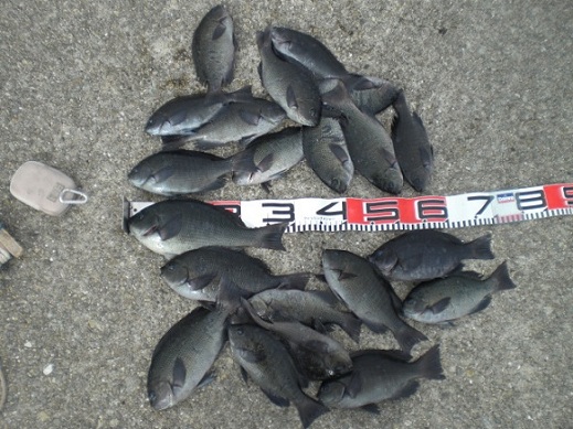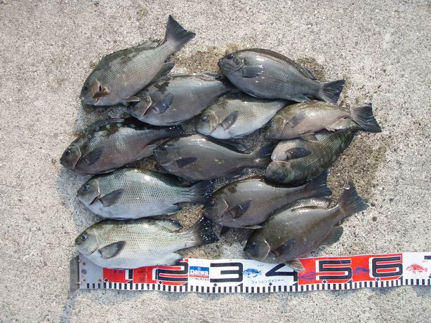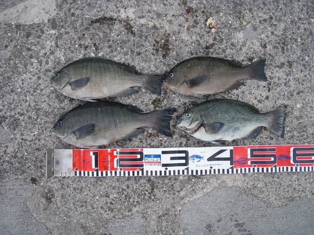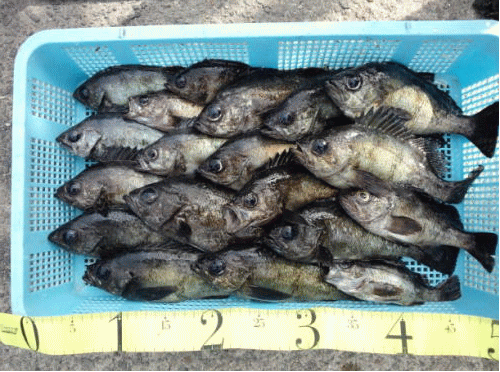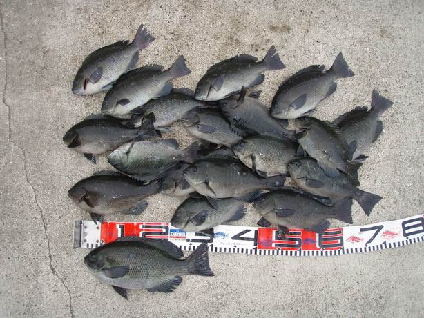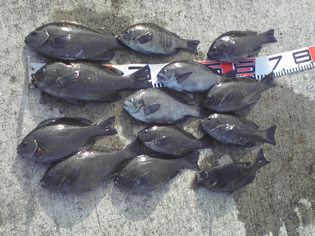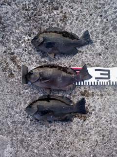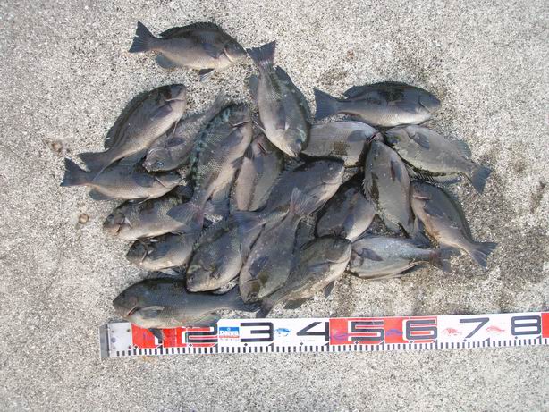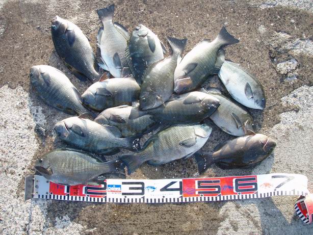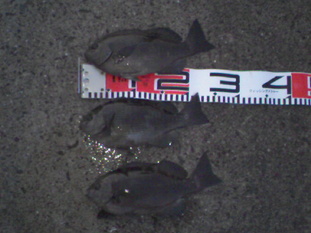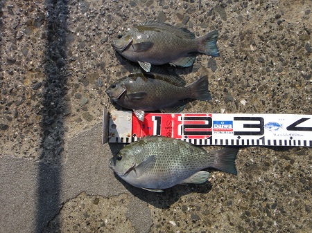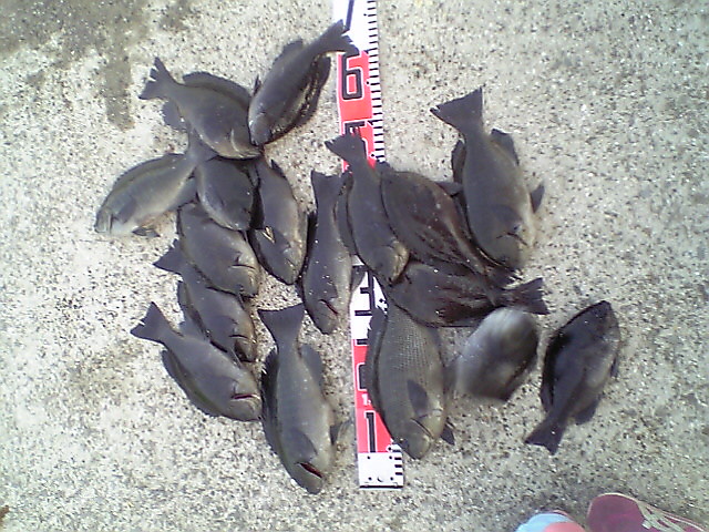 14時〜16時の釣果。エサ取りのオセン、イサギは活発。小アジは殆ど気配無し。