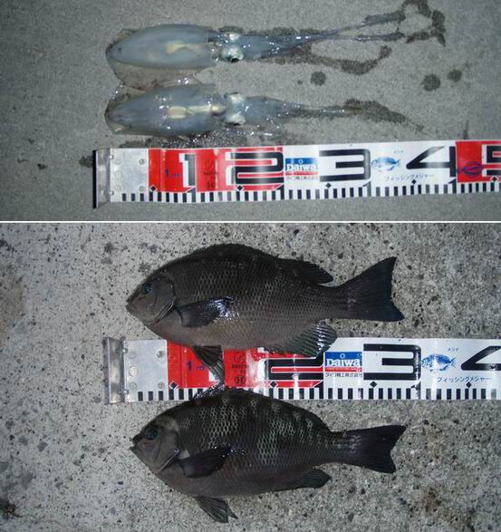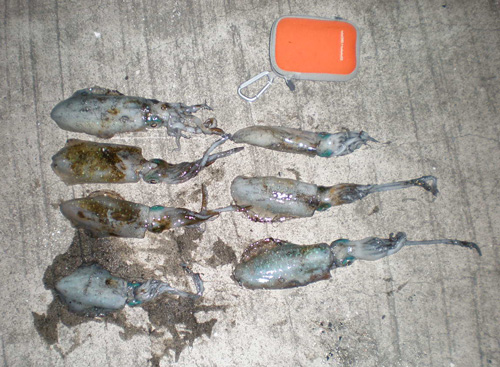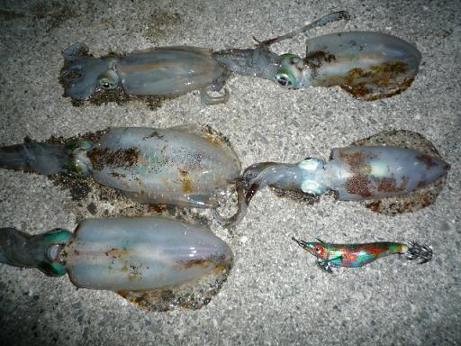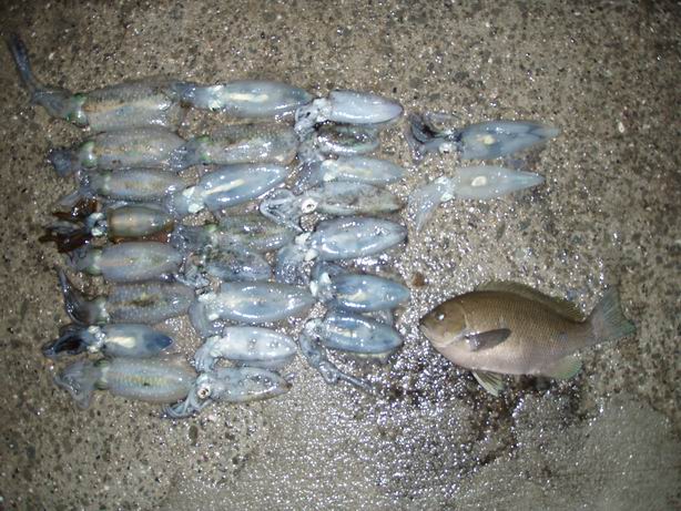 グレは浮いてますが小型が多いです。アオリは殆どがまだリリースサイズです。