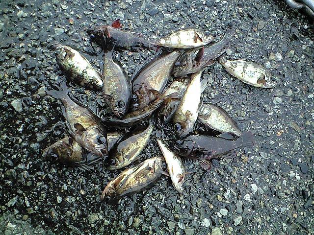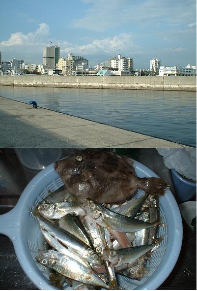雨後にもかかわらず濁りは無し。エサ取り多数。小アジ狙いの人、50〜70尾。