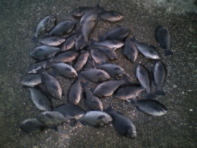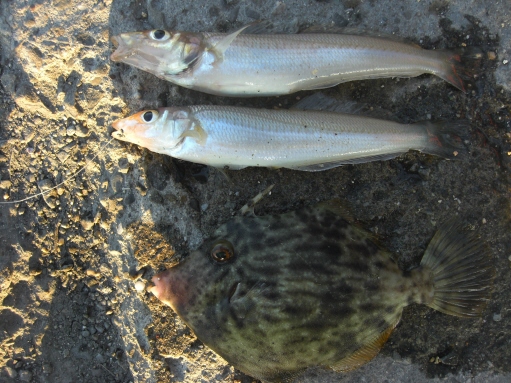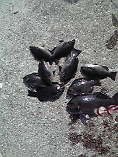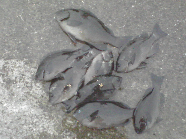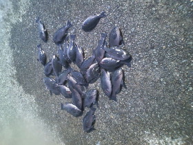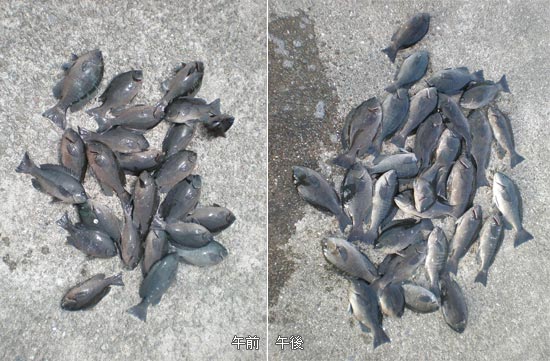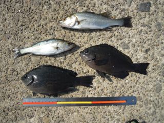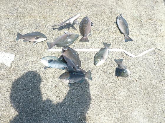 お昼前後にアタリ頻繁。オキアミではイワシ、ボラのみ。