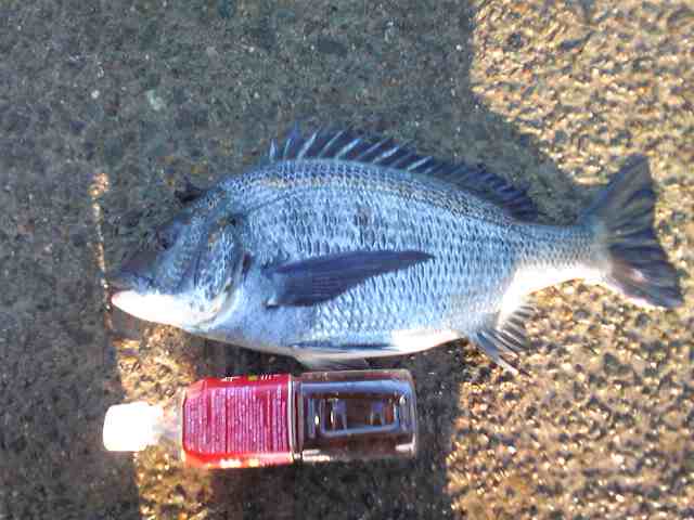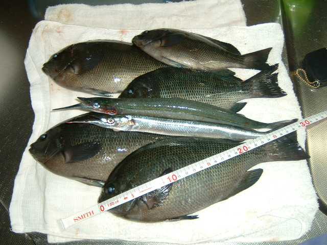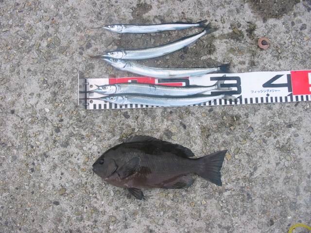 終日小アジの姿は無し。沖はサヨリの群れ。グレは時々浮く程度。活性は低い。