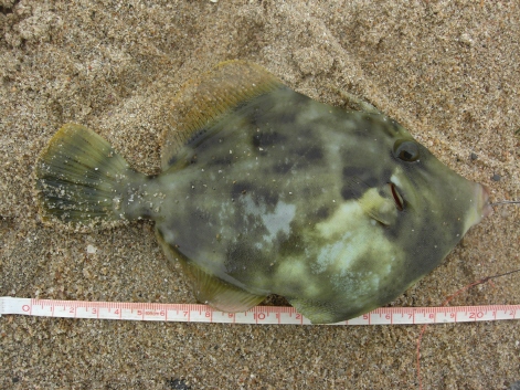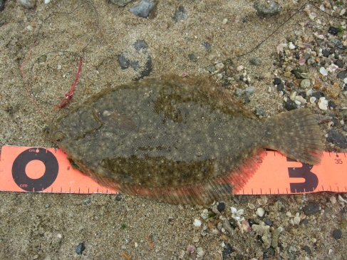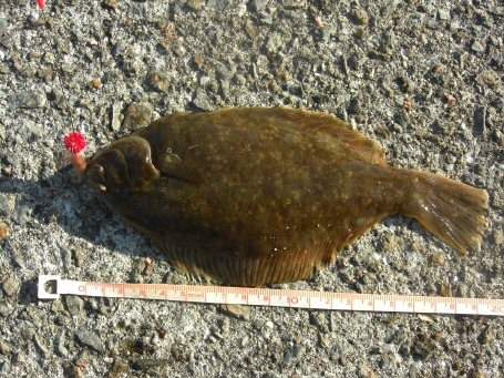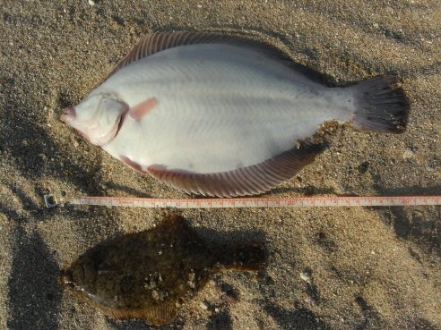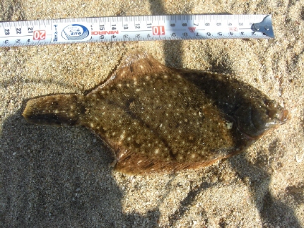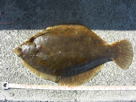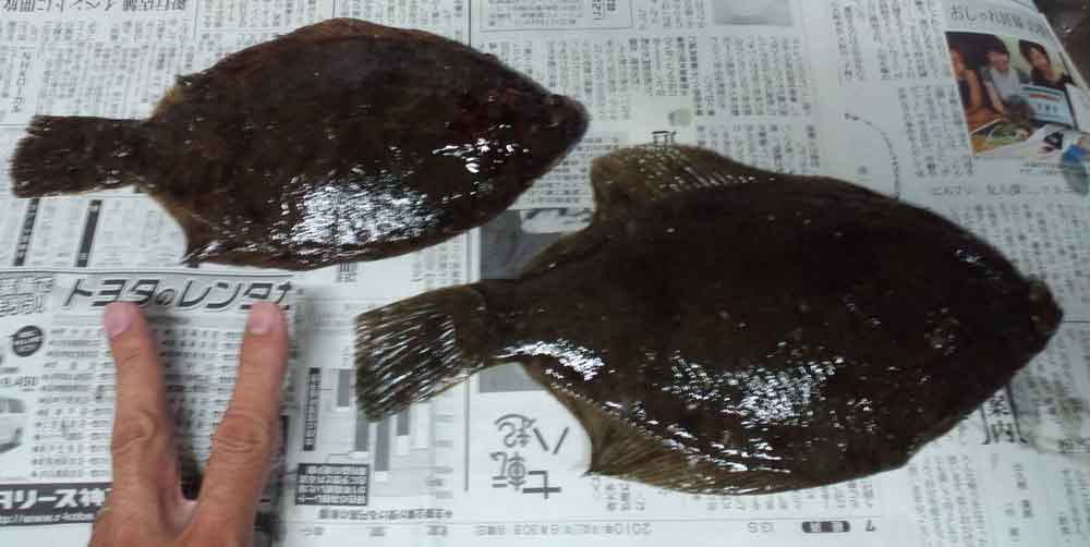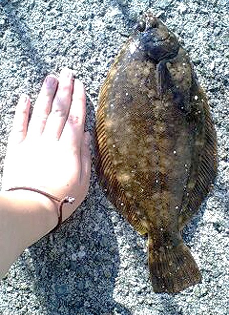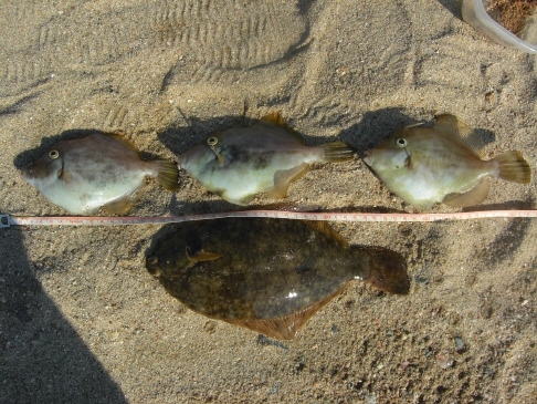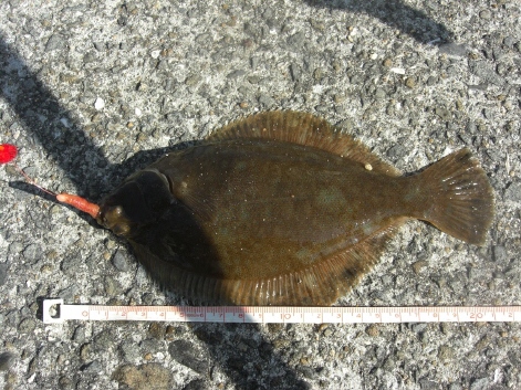 家族連れが多く、皆イワシが大漁。イワシのサビキに31cmのヒラメがヒット!