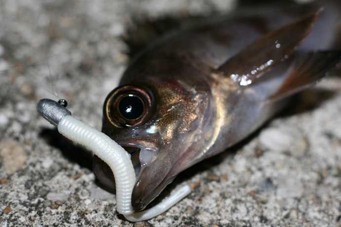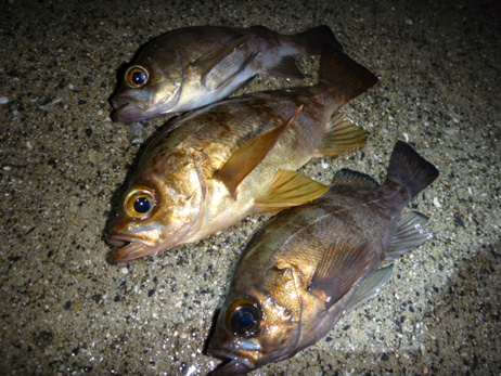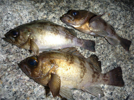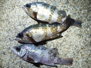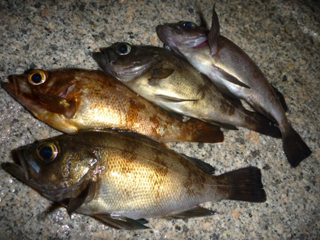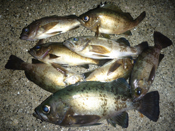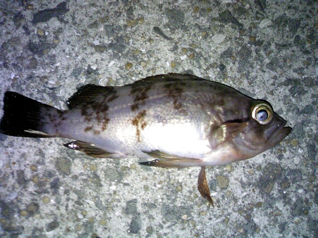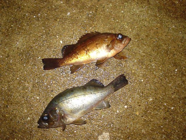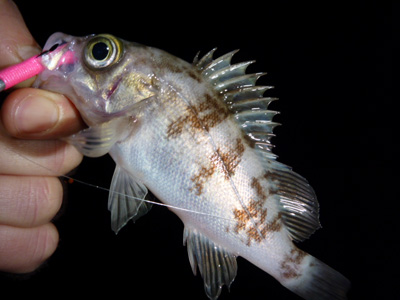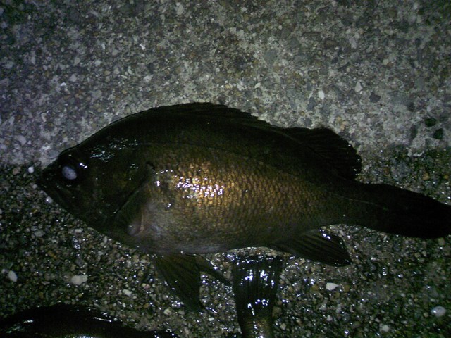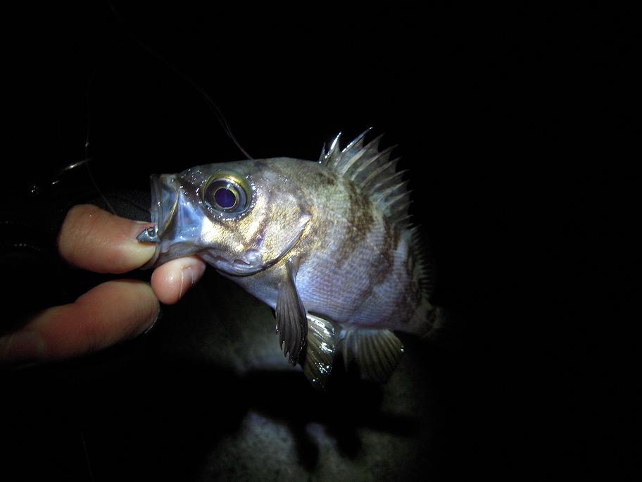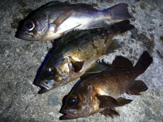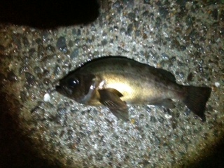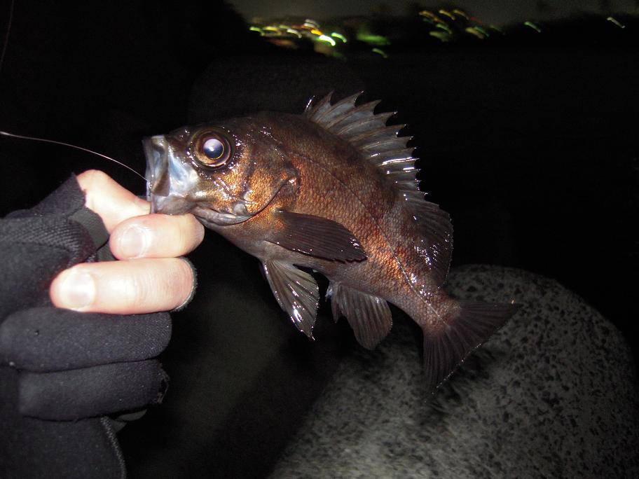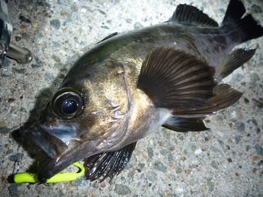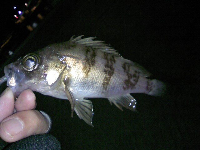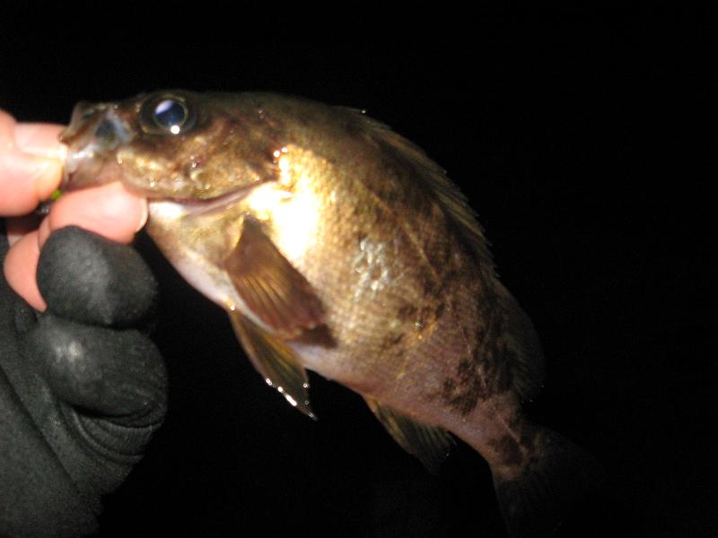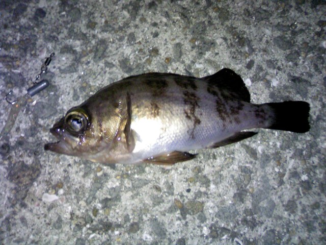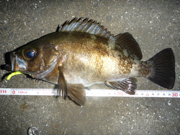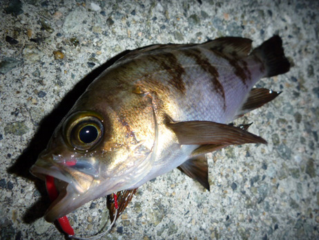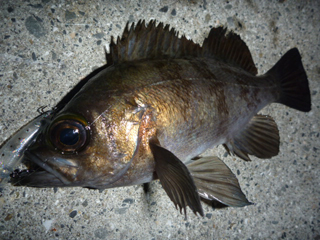 メバルの小型がいっぱいいましたが、粘って大きいのが来ました。